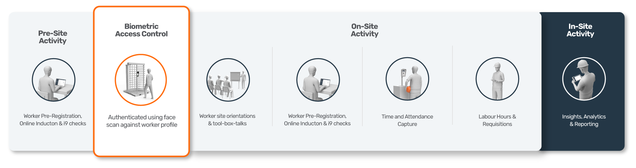 Tying workers’ identities to their facial profiles ensures authorized access, supporting OSHA compliance and boosting site security.