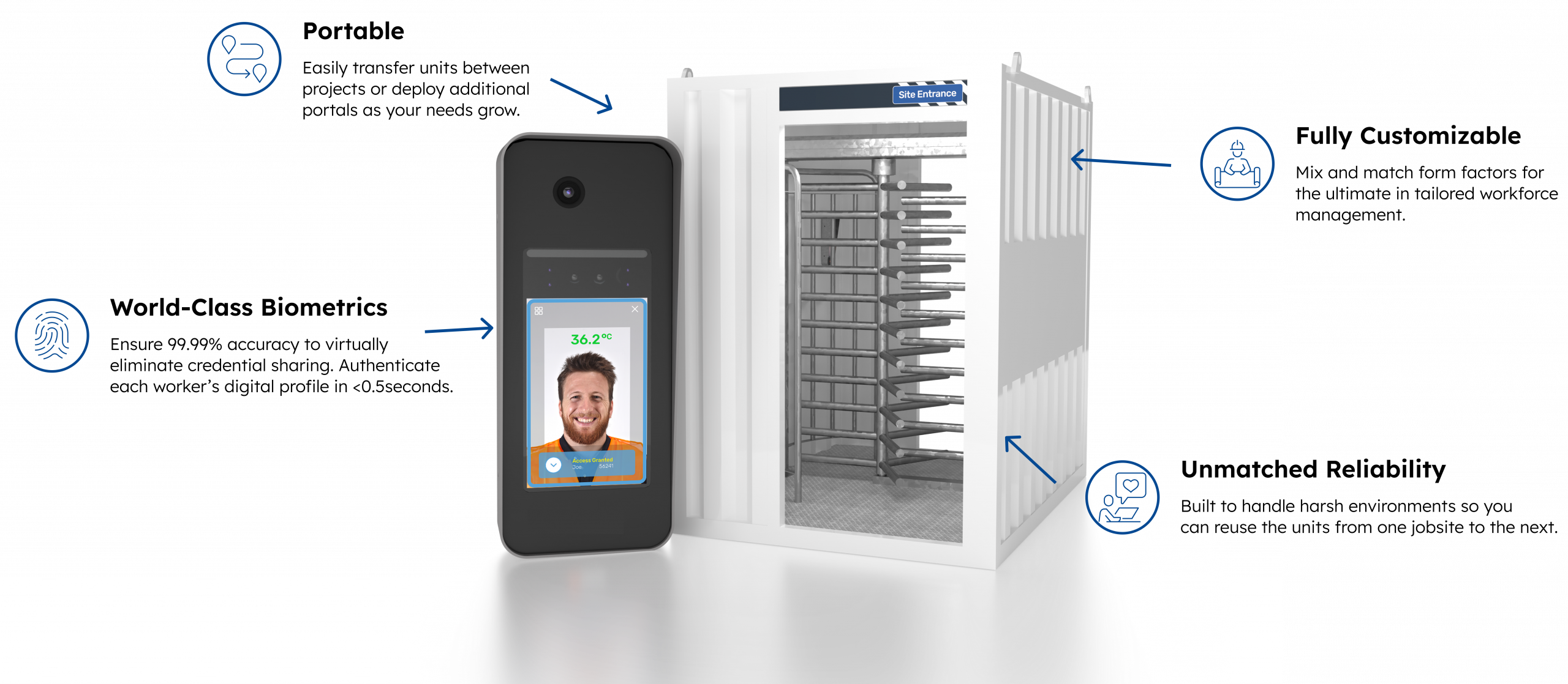 With rapid biometric authentication, bottlenecks at entry points are significantly reduced, helping teams get to work faster and boosting overall site productivity.